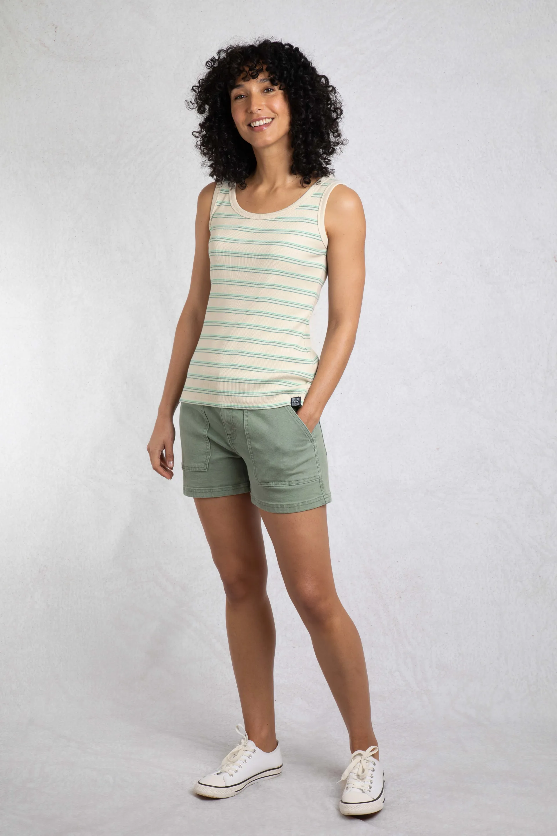 A versatile little top, the Luna Organic Cotton Ribbed Stripe Vest is the ideal choice for Summer. Ribbed for a great fit and featuring a tonal stripe design. Looks great on its own, or layered under a shirt.