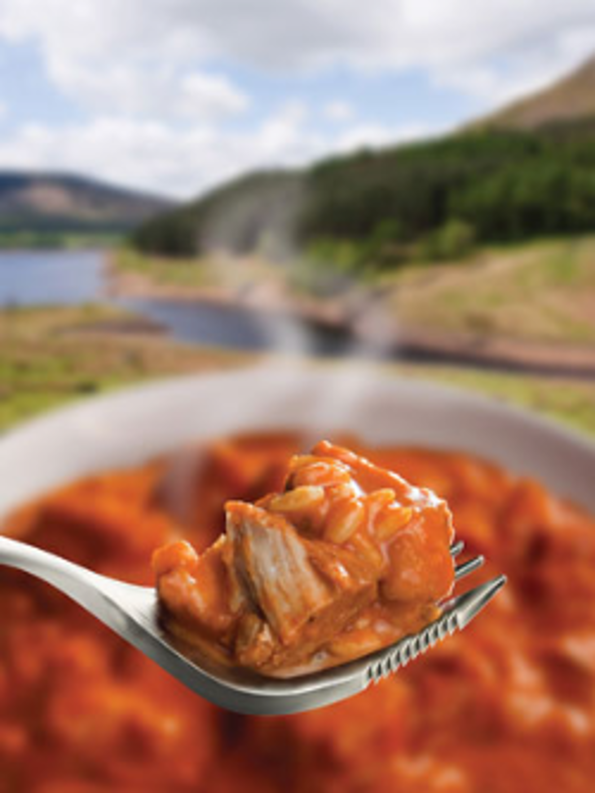 Tender chicken breast pieces in a rich tomato and coriander sauce with long grain rice.